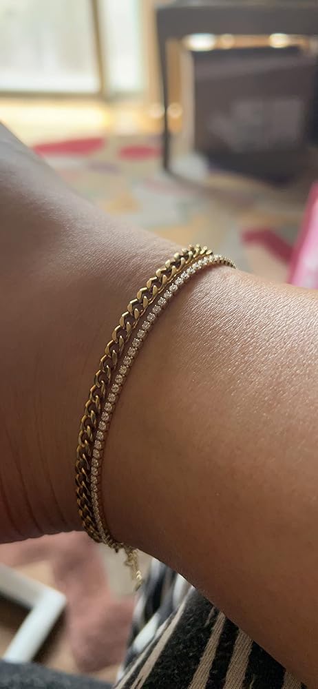 Mia Cute name bracelet but I have noticed it leaves my skin a bit green/black since I wear it all the time.
