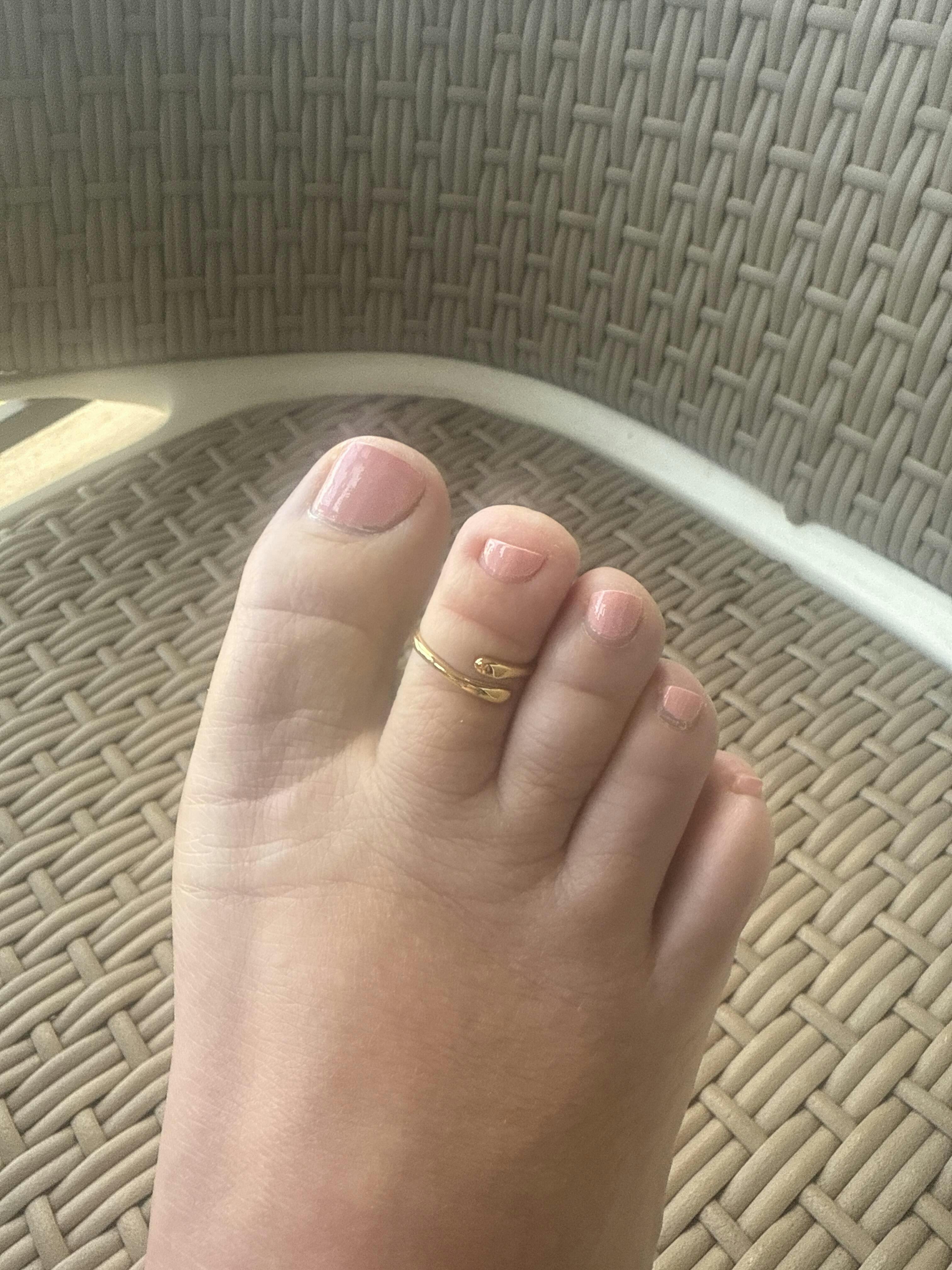 Matics07 I ordered the "hug" toe ring. It is super comfortable and really cute. It is 14k gold filled and won't tarnish or make your toes green.I like that the sizing happens on the top of the ring as part of the design. I have tried many toe rings that adjust underneath my toe and end up pinching me when I wear closed toed shoes.The toe ring also comes with a jewelry box which is a nice bonus.